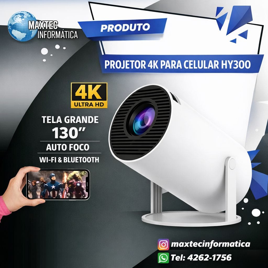 Transforme qualquer ambiente em um verdadeiro cinema em casa com o Projetor HY300 4K Ultra HD. Compacto, moderno e fácil de usar, ele projeta imagens grandes com ótima qualidade para filmes, séries, jogos e apresentações.